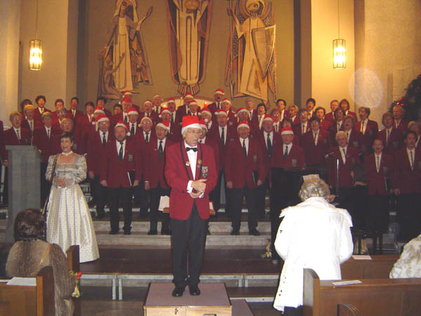 Chorleiter Alfons Puscher fordert die Zuhörer zum Mitsingen auf: "Wir wünschen euch frohe Weihnacht ..."