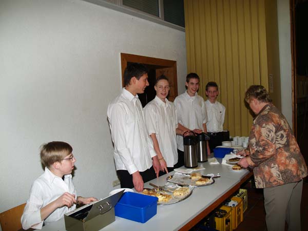 Dieses Foto hat die Bildnummer 06FRK-019 Die "Jungschützen" hatten die Aufgabe des Verkaufes übernommen und machten ihre Sache prima! Der Erlös aus dem Verkauf kam der Renovierung der Schützenhalle Sennelager zugute. |
