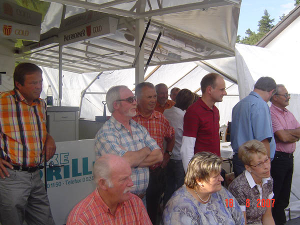 Dieses Foto hat die Bildnummer 07SJR-017 Die geladenen Gäste und Zuschauer zu Beginn des Festes. Geladen waren die zahlreichen Renovierungshelfer unserer Probenhalle und der Vorstand der Schützenbruderschaft Sennelager. |