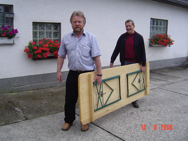 Dieses Foto hat die Bildnummer 08SJR-043 Und die choreigenen Tische müssen für den erneuten Gebrauch zunächst wieder eingelagert werden. Träger Horst und Wolfgang, (scheint ja nicht so schwierig zu sein!) |