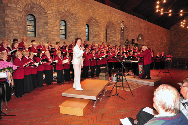 Dieses Foto hat die Bildnummer 09FKZ-017 Hier steht nun Ilona vor dem Publikum. Sie singt in Russisch und in Deutsch mit Begleitung des Chores. |