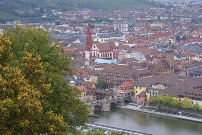 Immer wieder schöne herbstliche Ausblicke auf Würzburg.