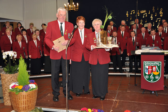 Dieses Foto hat die Bildnummer 10FKZ-021 Hildegard Geppert erhält ein Präsent überreicht zu mehr als 20 Jahren Vorstandsarbeit im Chor. |