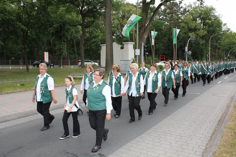 Die Damen der Schießabteilung haben noch nicht ganz den gleichmäßigen Marschschritt gekonnt. Aber das kommt noch!