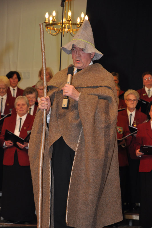Nach der Pause erscheint Sänger Wolfgang Fischer in seinem "Hirtenanzug" und ruft die Hirten zum Stall in Bethlehem.