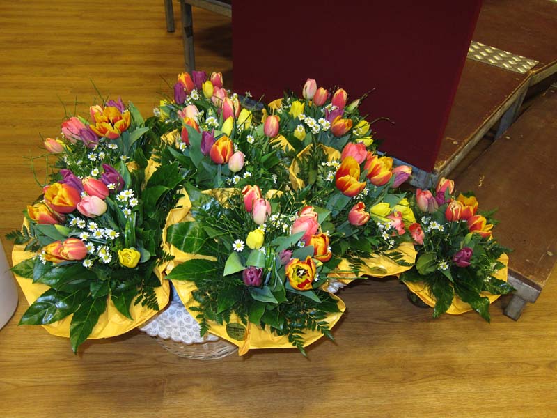Sieht das gut aus. Das sind die Frühlingssträuße, die die Solisten usw. am Schluss erhalten. |