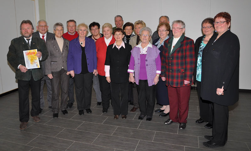 Ein Gemeinschaftsbild der wieder gewählten 3 Vorstandsmitglieder Hildegard Geppert, Gisela Hoischen und Horst Schröder. Alle anderen Mitglieder hatten den besonderen Dank für ihre eifrige Teilnahme sehr verdient bzw. sie bekamen eine Nadel für langjährige Zugehörigkeit zum Chor. |