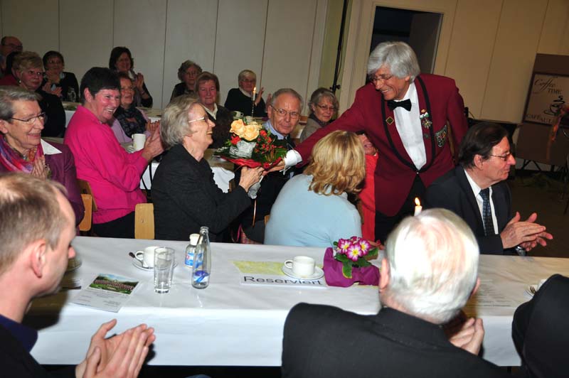 Alfons reicht gerne seinen Blumenstrauß an Frau Lüke weiter.