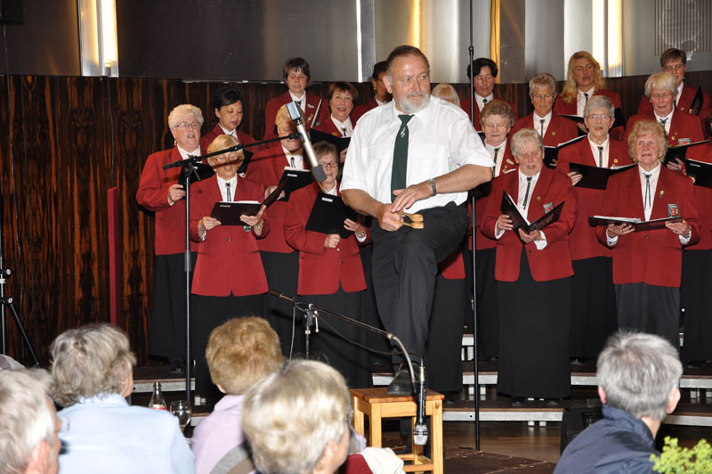 Zu einem neuen Dankeslied des Hubertus-Chores schlägt Josef Thorwesten mit seinen Löffeln den Takt. Das muss gelernt sein!