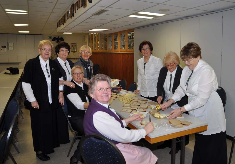 Fleißige Damen vom Chor fertigen Schnittchen an.
