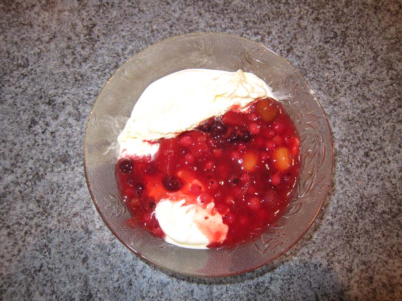 Auch das Dessert war sehr geschmackvoll: Rote Grütze mit Eis!