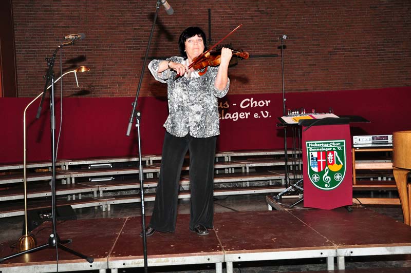 Barbara Hüschen an der Violine. (Mit den Haaren von dem Pferde streicht sie - weit entrückt der Erde über straff gespannte Därme - und erzeugt so Herzenswärme).