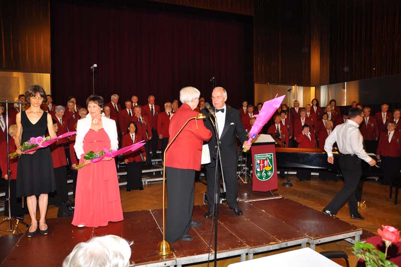 Die Beteiligten erhalten zum Dank einen Blumenstrauss (Ellen, Ilona, Franz-Josef) |