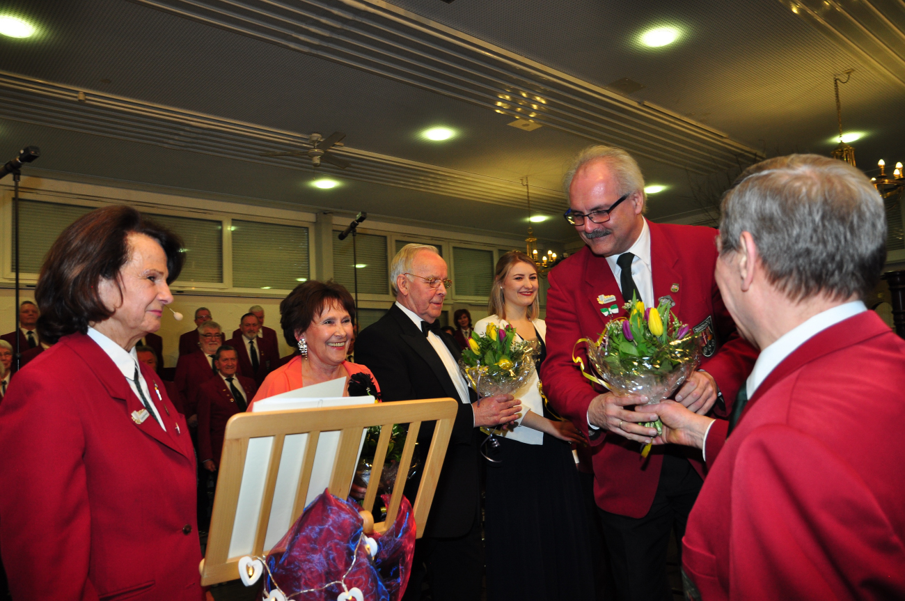 Den Akteuren wird ein Blumengruß überreicht