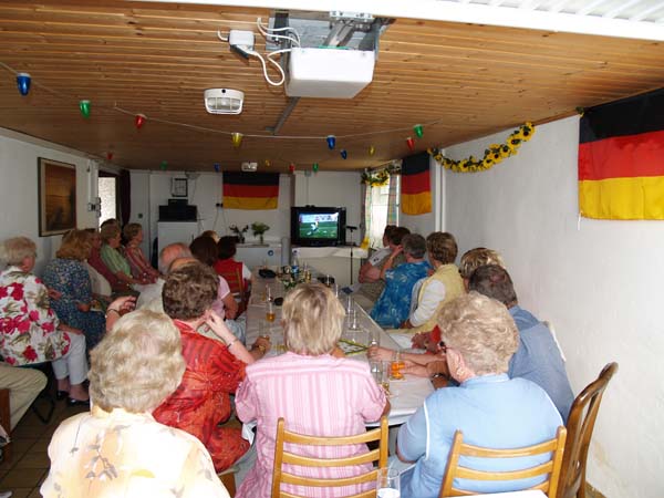 Dieses Foto hat die Bildnummer 99XXX-009 Aufmerksames Verfolgen der Fußball-Weltmeisterschaft 2006. Der Hubertus-Chor ist ja sehr vielseitig interessiert! |