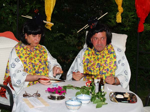 Dieses Foto hat die Bildnummer 99XXX-023 Ist aber auch schwierig mit diesen Stäbchen. Ob sie wohl satt werden? Es gibt aber auch noch etwas vom Grill! |