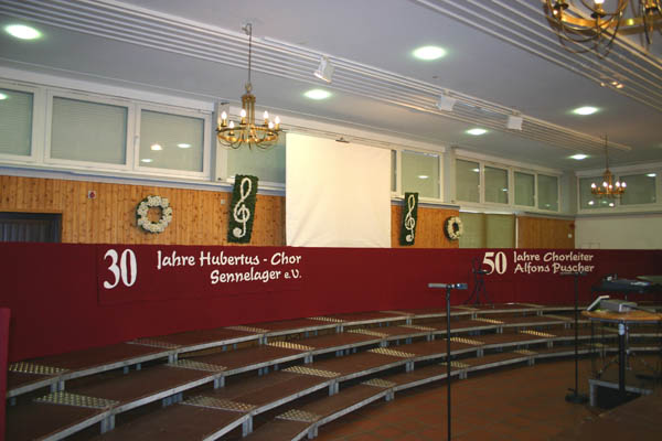 Dieses Foto hat die Bildnummer 07FKZ-001 Bei unserem Café-Konzert in Sennelager werden beide Jubiläen öffentlich gefeiert. hier: Aufbau und Vorbereitung der Schützenhalle. |