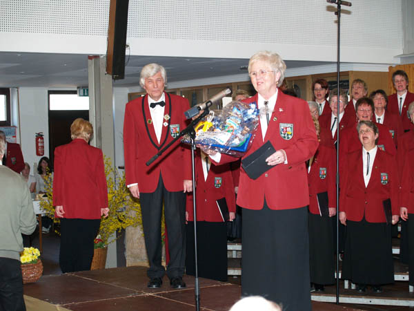 Dieses Foto hat die Bildnummer 07FKZ-005 Zunächst erhält Alfons Puscher zu seinem 50-jährigen Chorleiterjubiläum eine Gratulation; er wird mit einem Geschenk überrascht. |