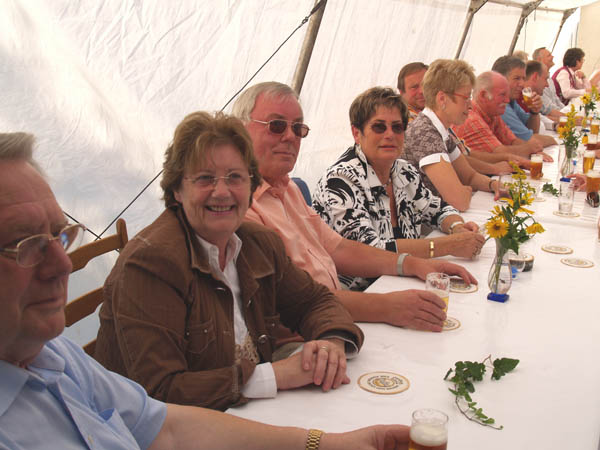 Ein Teil unserer Gäste im Zelt. Sie haben ihre Freude.