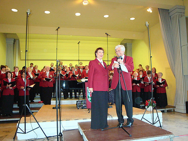 Kleine Scherze zwischen Solistin und Chorleiter.