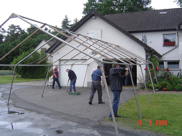 Am Freitag beginnen eifrige Sänger mit dem Zeltaufbau.