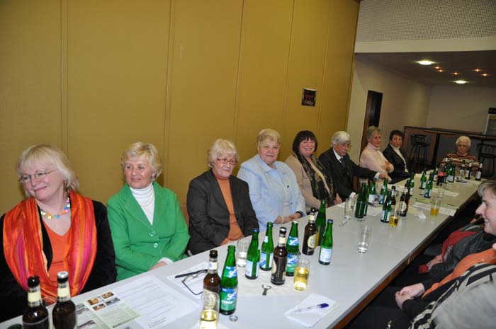 Dieses Foto hat die Bildnummer 09JHV-010 Damenriege mit einzelnem Herrn. Rechts neben Herrn Puscher lächelt unser neues Mitglied Maria Buschmeier. |