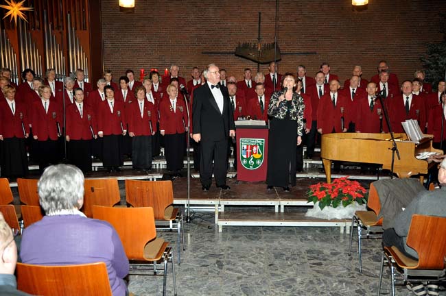 Dieses Foto hat die Bildnummer 09WKZ1-051 Solisten Ilona Puscher und Franz Josef Voß mit Chor bei "O heilge Nacht". Es kam beim Publikum wunderbar an. |