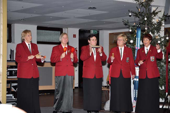 Dieses Foto hat die Bildnummer 09WKZ1-021 Ob das mal eine richtige Band des Hubertus-Chores wird? - Ellen Birr gibt Anleitungen und sie unterstützen bei der "Petersburger Schlittenfahrt". |