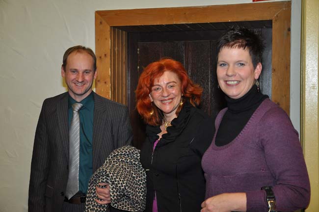 Dieses Foto hat die Bildnummer 09WKZ1-034 Zu Sennelager gehört, dass sich die Gäste mit den Chorangehörigen noch ein wenig an der Theke aufhalten, hier der Schützenoberst Koch mit Gattin und Maria Keil. |