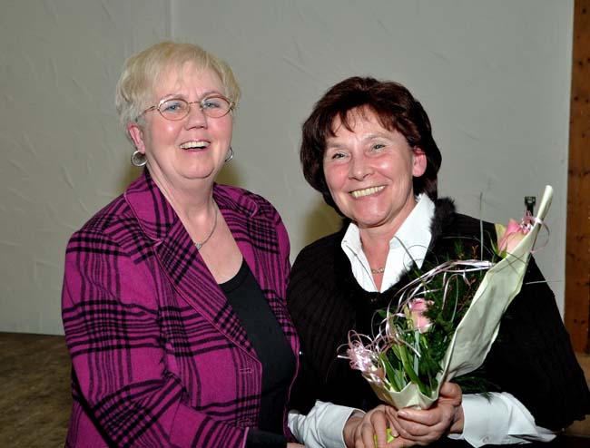 Dieses Foto hat die Bildnummer 10JHV-033 Hildegard Geppert bedankt sich bei Ilona Puscher für ihren Einsatz bei unseren Konzerten. Sie hat eine wunderschöne Alt-Stimme. |