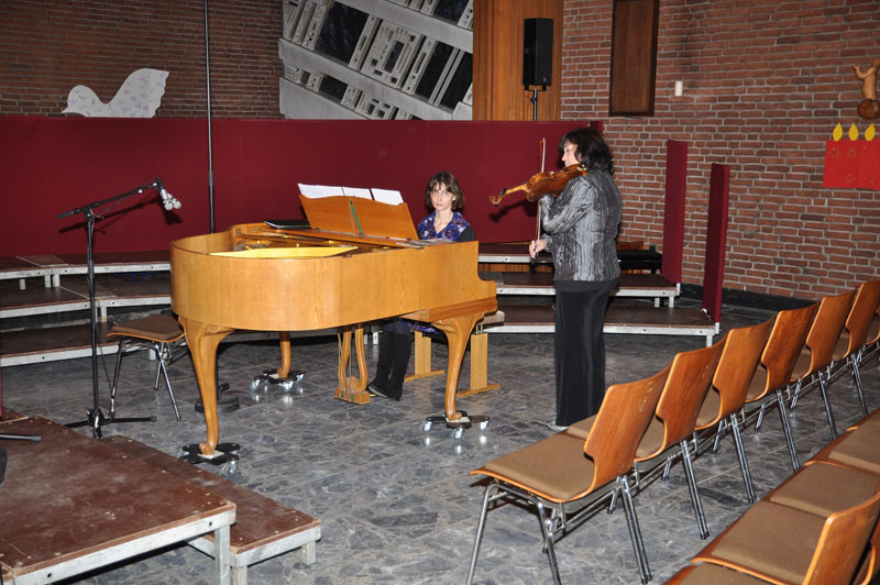 Hier spielen sich "warm" Barbara Hüschen (Geige) und Ellen Plem (Piano). |