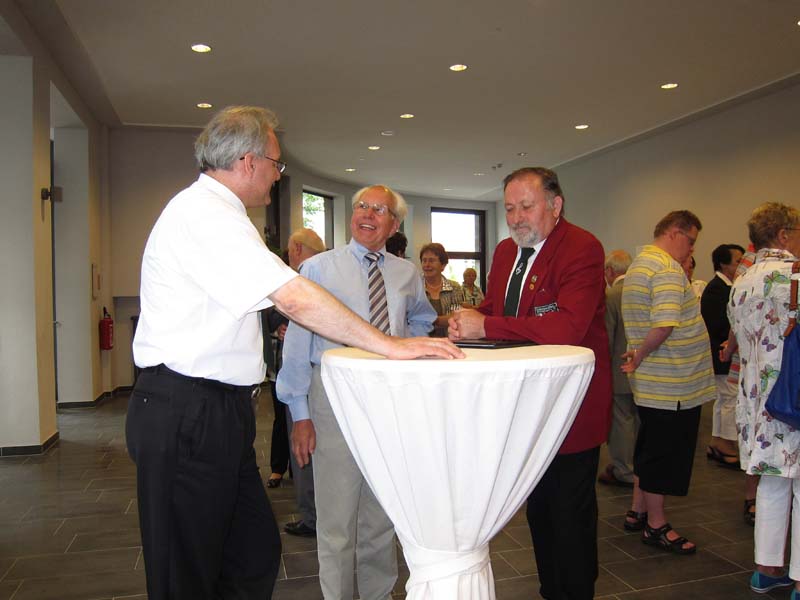 Chormitglieder Andreas und Josef sind im Gespräch mit einem Gast.