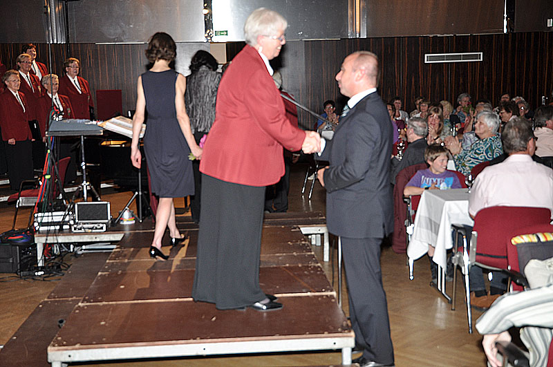 Die Bühne leert sich und Hildegard Geppert verabschiedet sich vom Bürgermeister. Damit ist ein wunderschönes Frühlings-/Sommerkonzert mit Kaffeetrinken vorbei.