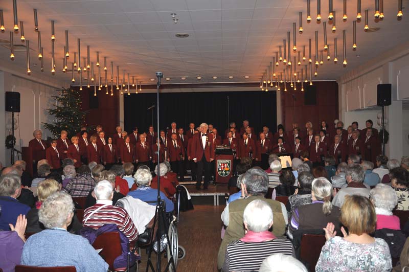 Der Chor tritt auf im voll besetzten Saal in Bad Waldliesborn. |