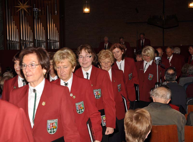 Die Damen vom Alt verlassen die Kirche, um Pause zu machen. |