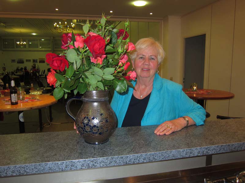 Hildegard, fast versteckt von roten Rosen!