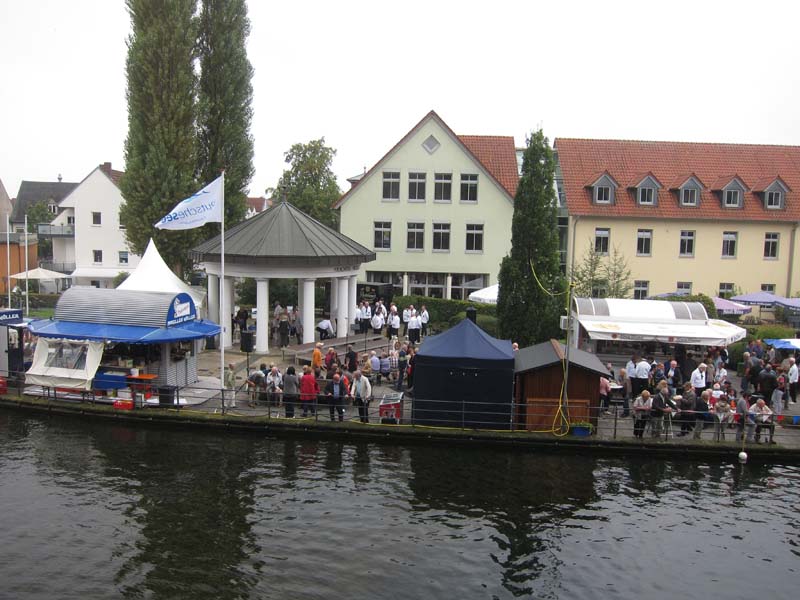 Ein Blick aus dem Kongresshaus auf das bunte Treiben beim Fischerfest.
