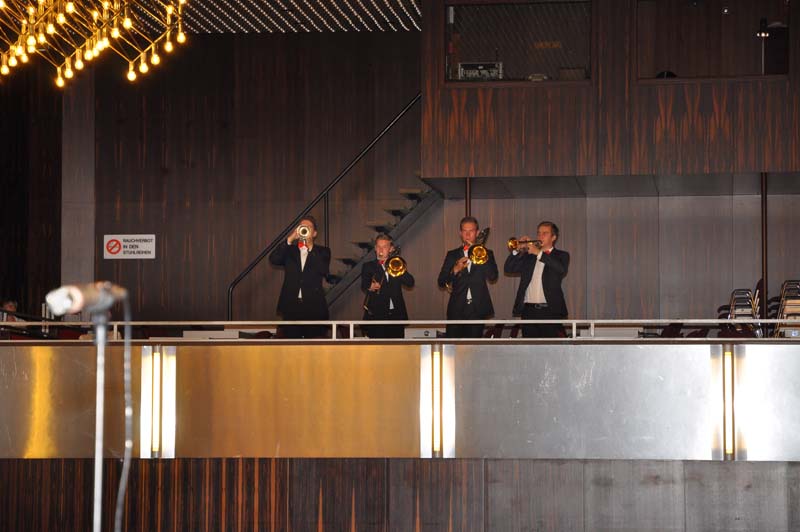 Fanfaren von Pure Brass rufen das Publikum nach der Pause herein |