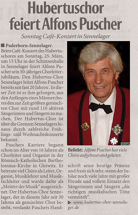 und der Hubertus-Chor Sennelager besteht seit 30 Jahren.