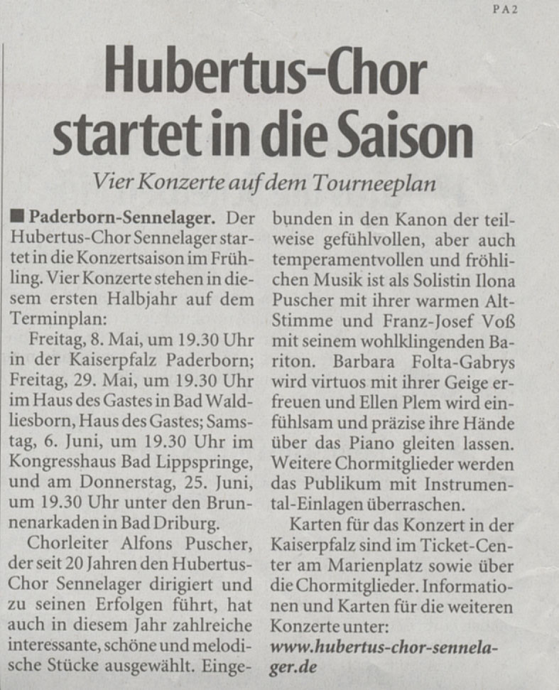 Westfälisches Volksblatt am 30.04.2009