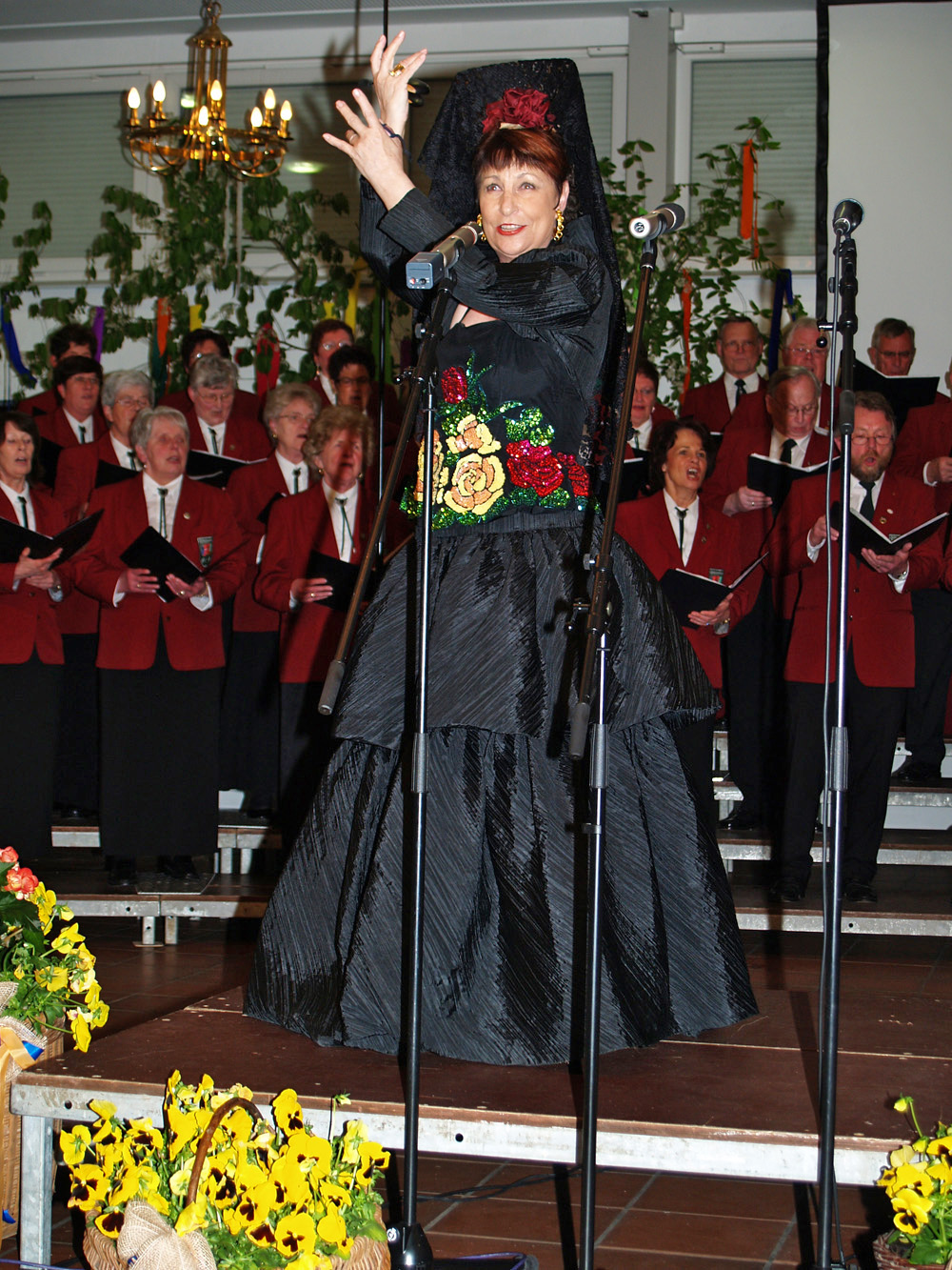 Ellen May feiert bei den Weihnachtskonzerten Frau Ellen Birr – Künstlername Ellen May – engagierte sich im Hubertus-Chor Sennelager nach ihrer beruflichen künstlerischen Laufbahn seit dem 01.02.1996 als Solistin (Sopranistin). Sie bereichert den Chorgesang seit dieser Zeit und kann als das "Juwel" des gemischten Chores bezeichnet werden. Für den Chor und ihre große Anhängerschar stellte sie ihre Stimme immer voller Freude und kostenlos zur Verfügung. Sicher werden sich die Konzertbesucher an den Einsatz verschiedener Instrumente sowie ihre nette komödiantische Art und die wunderschöne, jeweils zum Gesang passende Garderobe gern erinnern. Zahlreiche Konzerte fanden in diesen Jahren z. B. in Bad Driburg, Bad Lippspringe, Bad Meinberg, Bad Salzuflen, Delbrück, Herbram, Paderborn, Peckelsheim, Sennelager, Schloß Neuhaus und Warburg statt. Da der Hubertus-Chor der einzige Chor innerhalb des Bundes der Historischen Deutschen Schützenbrüder ist, erfolgten Konzerte mit Ellen May bei den Schützenwallfahrten nach Werl, den Bundesfesten der historischen Schützenbruderschaften in Schloß Neuhaus und in Delbrück. Auf Konzertreisen nach Salzburg, zum Europarat in Straßbourg, nach Freiburg (Dom), auf Chorreisen nach Potsdam, Berlin, Pleistein/Weiden mit Auftritten in Marienbad, Franzensbad, im Regensburger und Bamberger Dom, auf dem Max-Reger-Park Weiden, einer Chorreise nach Leipzig, Naumburg, Weimar und Erfurt sowie nach Schwerin, Trier und Bad Zwischenahn, Bremen, Bremerhaven und Oldenburg brillierte und begeisterte sie immer wieder mit ihrer wunderbaren Stimme. Im Jahre 2006 feierte sie ihr 50. Bühnenjubiläum; nun möchte sie ihre Solistinnenkarriere beenden und den Hubertus-Chor weiterhin als "Chorschwester" begleiten. Anlässlich der Weihnachtskonzerte 2008 unter der Leitung unseres geschätzten Dirigenten und Chorleiters Alfons Puscher in Delbrück (06.12.), Bad Driburg (11.12.), Sennelager (14.12.) und Paderborn (21.12.) wird sie den Hubertus-Chor Sennelager letztmalig mit ihren Soli, ihrem Temperament, ihrer Kleidung und ihrer Persönlichkeit begeistern. Der gesamte Chor freut sich schon jetzt auf die kommenden Konzerte. Gisela Hoischen